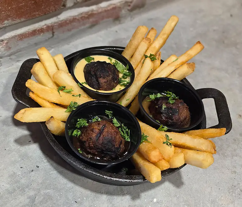We’re dropping three fire-roasted meatballs, each in its own bold sauce: Queso, Sweet & Spicy Chili, and Sesame Ginger. And because no buzzer-beater is complete without a cleanup crew, we’re throwing in fresh fries to help you finish every last dip. Three shots. Three sauces. Zero mercy. Only $10!